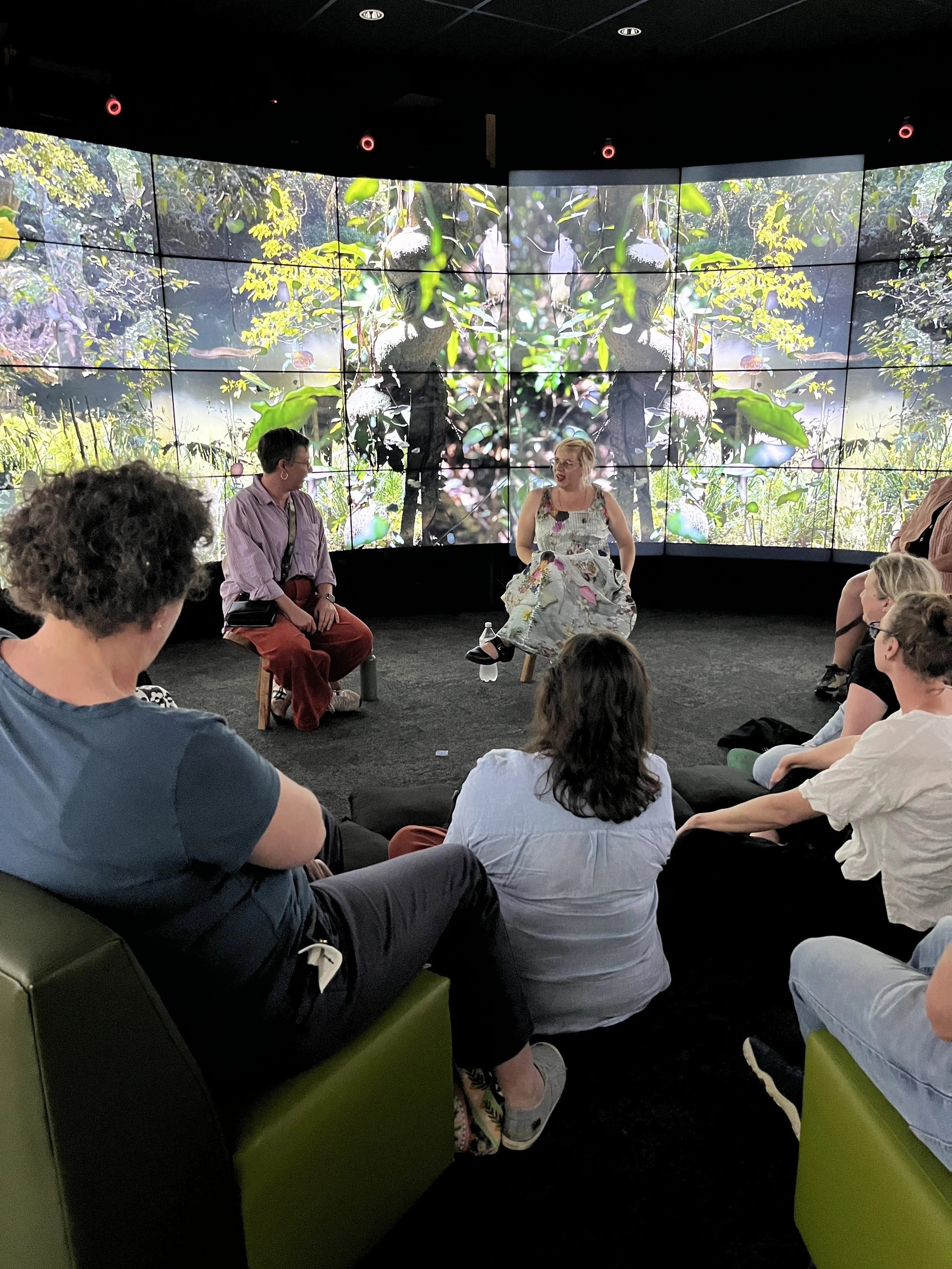 Aside from the creative output, Marian opened up about her learnings from the residency, in particular her experience with the Creative Ecologies Research Cluster team and the group of fellow artists on the K’gari Field Trip. Whilst she tends to work solo, collaboration was a thread through the residency and she found the enthusiasm of other artists within those experiences infectious. She was particularly grateful for the access to technology that supported the work’s development and for the practice-led research process: testing, failing, learning and the ultimate vulnerability of presenting a work-in-progress to further hone the work.