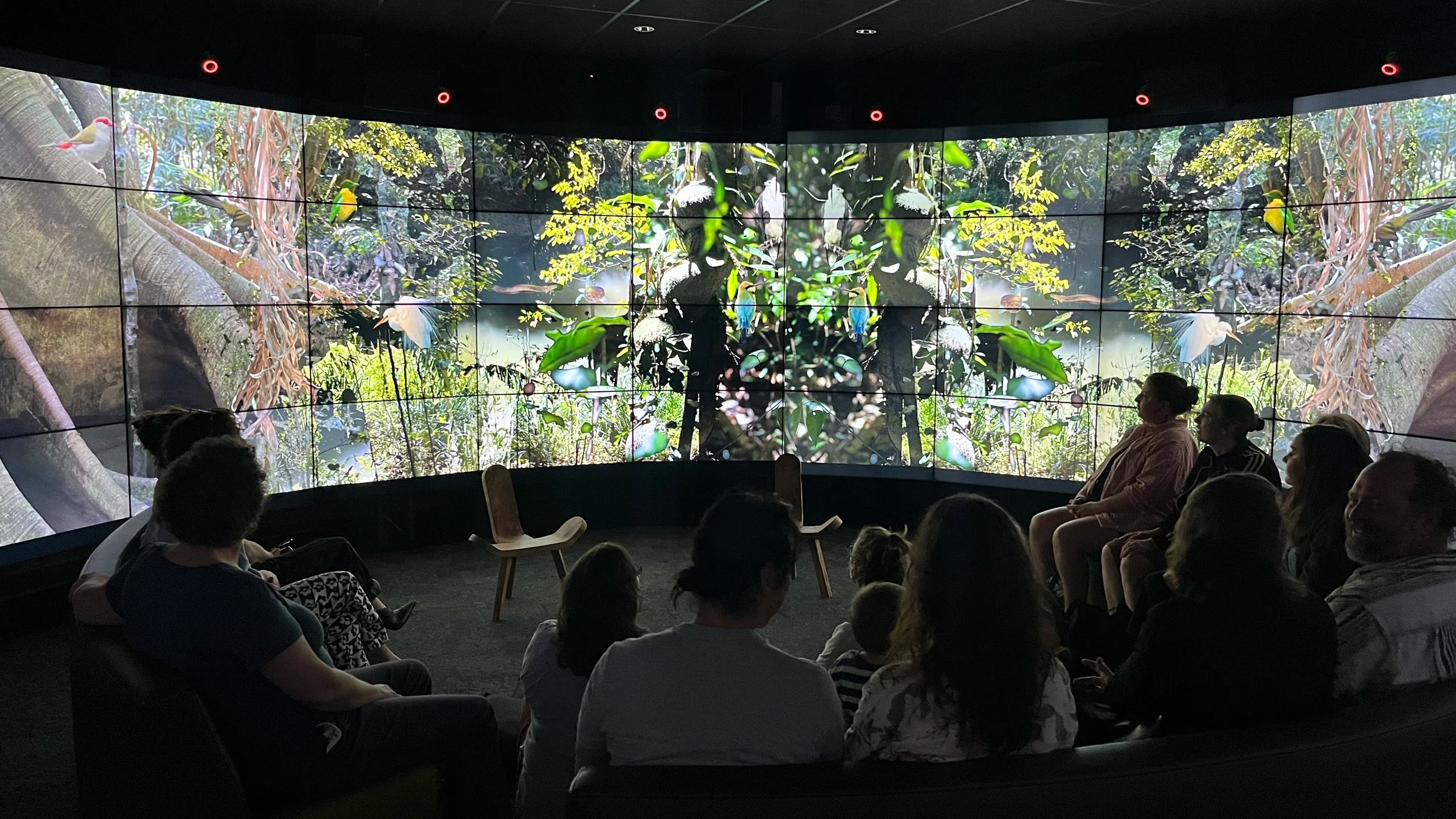 Displayed in the 320-degree visualisation system of the CAVE2 at UniSC, layered images, invented creatures and remote landscapes create a surrealist story book inspired by the wonder and awe of childhood and the natural world.