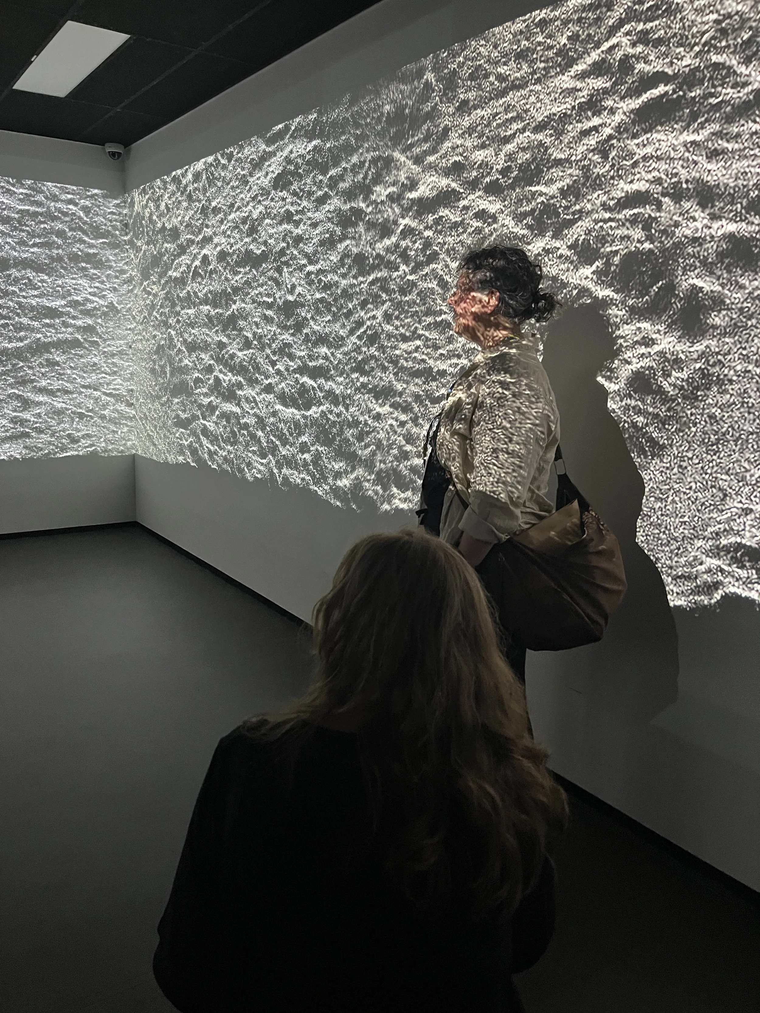 Nine installation works across the UniSC campus further deepened the experience, including Keith Armstrong’s multi-channel video Translucent Kinship — responding to Forest Art Intelligence — and Andrea Rassell’s The Space Between Certainties, developed through an ANAT Synapse residency and displayed in the Cave2 system. These works became further catalysts for vibrant discussion among the group.