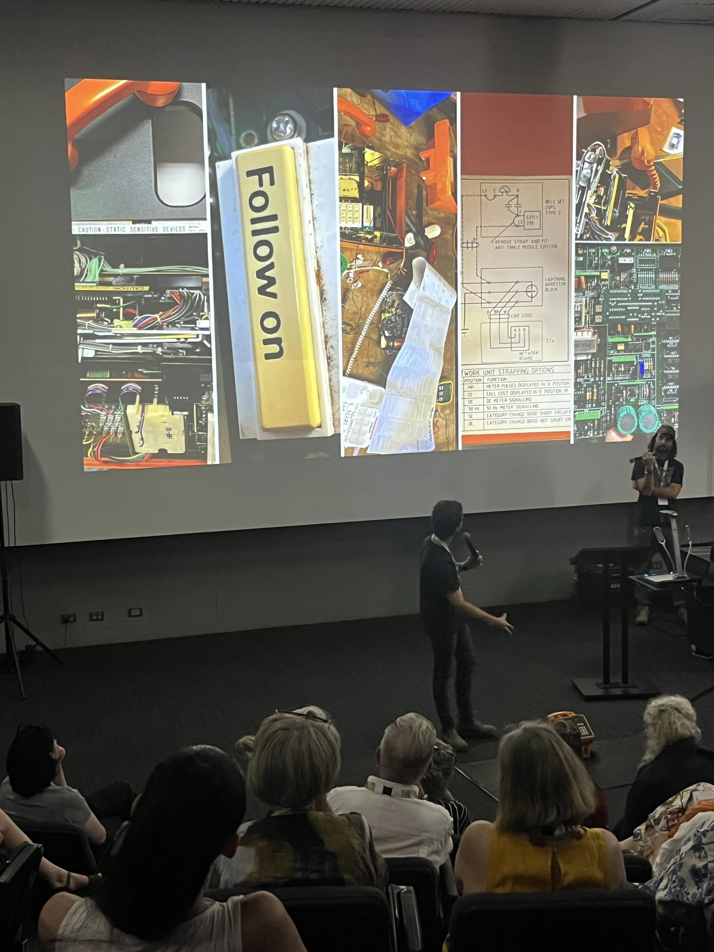 With the event officially underway, the Critical Light cohort joined other guests in the adjacent lecture theatre for the first session of the screen program, featuring works by Lyndon Davis and Leah Barclay (Beeyali), Yimbala Maranoa Arts Collective (Terrarara: Precious Earth), and local artist Amanda Bennetts, who presented Latency and Lacerations — a video artwork developed during R|Artist Residency: Urban Ecologies. The three works offered rich ground for discussion, both thematically and technically, prompting reflection on how form and method shape audience experience.