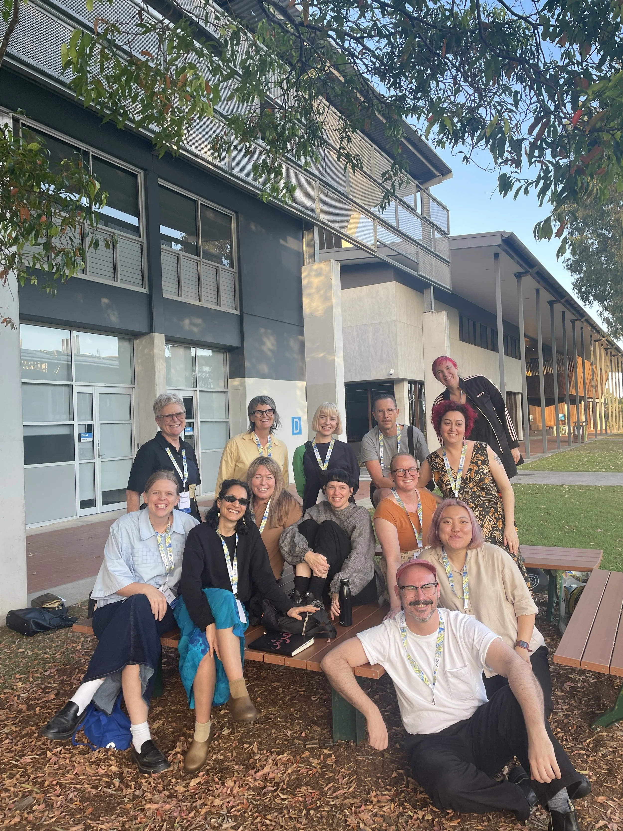 The keynote address by rea, a new media artist from the Gamilaraay/Wailwan and Biripi Peoples, was a considered reflection on choosing new media in the 1980s to escape the colonial constraints of the artistic canon. The insights of rea and Aunty Helena continued to resonate as the group gathered in a large circle after morning tea to listen to Lyndon Davis speak of growing up on this remarkable Country. The deep vibrations of his yidaki, played on bloodwood, even stirred UniSC’s resident kangaroos.