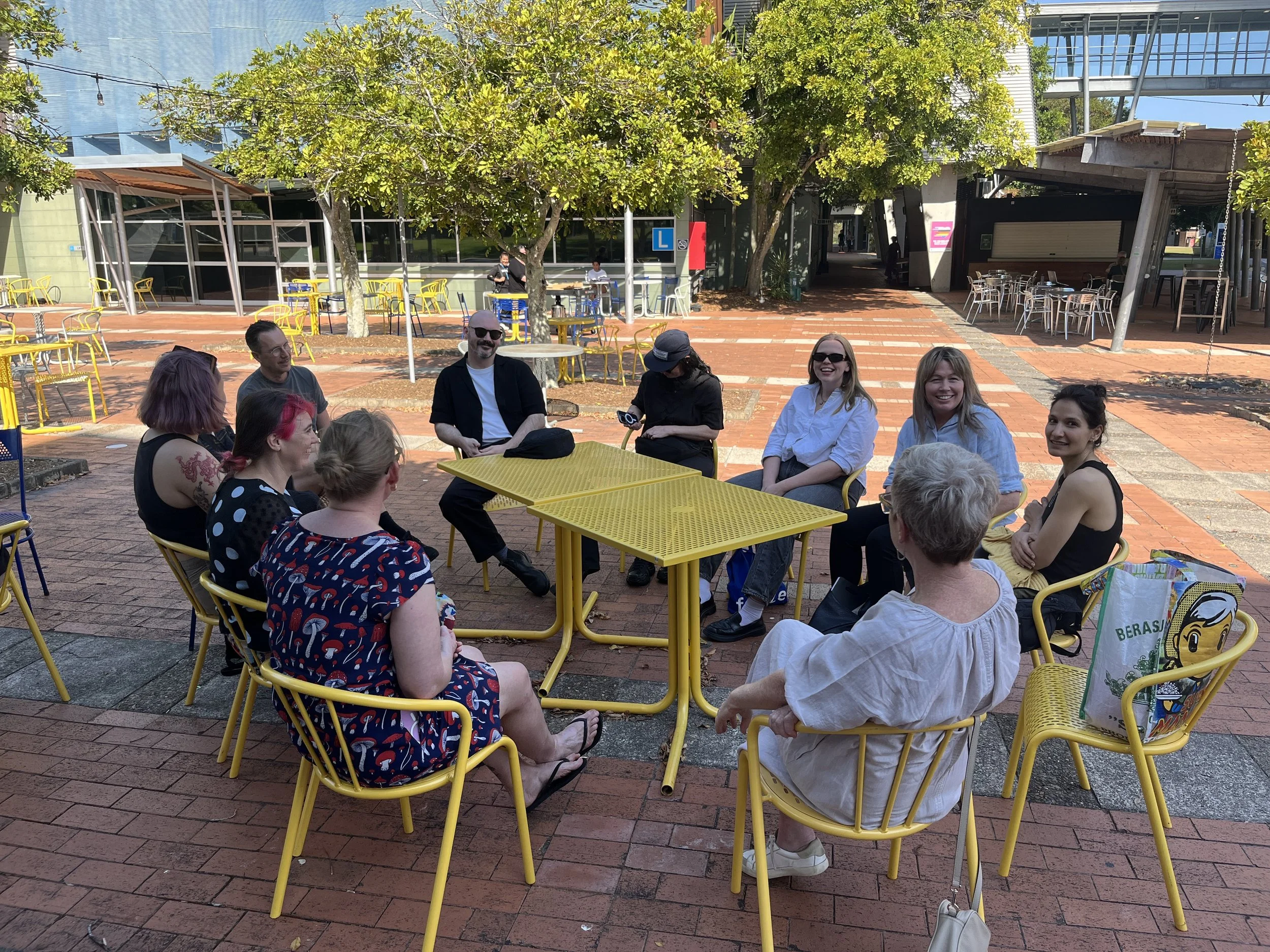 The afternoon featured a ‘Group Reading’ from Caitlin Franzmann’s latest deck of divination cards, Tide Times, developed from research with the Australasian Mangrove and Saltmarsh Network. This was followed by a screening of Ranjipuy: Coming from the Beach by Miayarrka Media, an intergenerational and intercultural arts collective from Yalakun Outstation on Yolŋu Country in East Arnhem Land. A presentation from the Ageing Well Creative Lab at UniSC warmed our hearts and reminded us of the power of creativity for every age and stage of life.