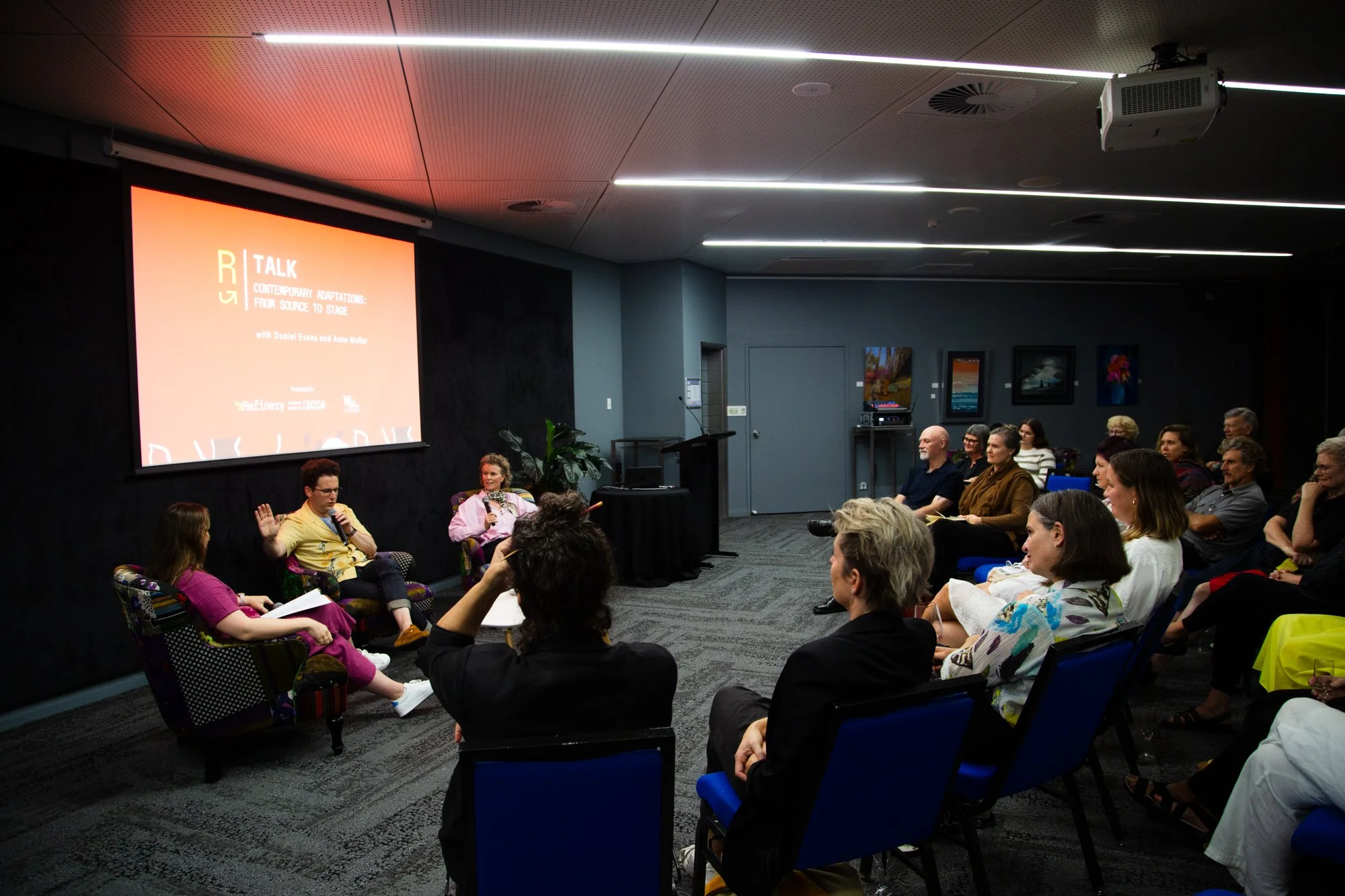 The Beausang Room at The Events Centre, Caloundra, was the perfect venue for a gathering of performers, writers, theatre makers and creatives for the R|Talks event, Contemporary Adaptations: From Source to Stage. Featuring Artistic Director of Queensland Theatre Company, Daniel Evans and local creative producer, Amie Moffat, the panel discussion was expertly facilitated by Dr Hannah Banks, Lecturer in Theatre and Performance at UniSC.